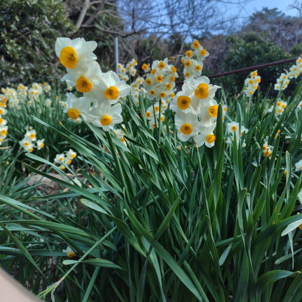 唐音水仙公園のスイセンは圧巻ですが、こちらの画像は道路脇に咲くスイセンです。
