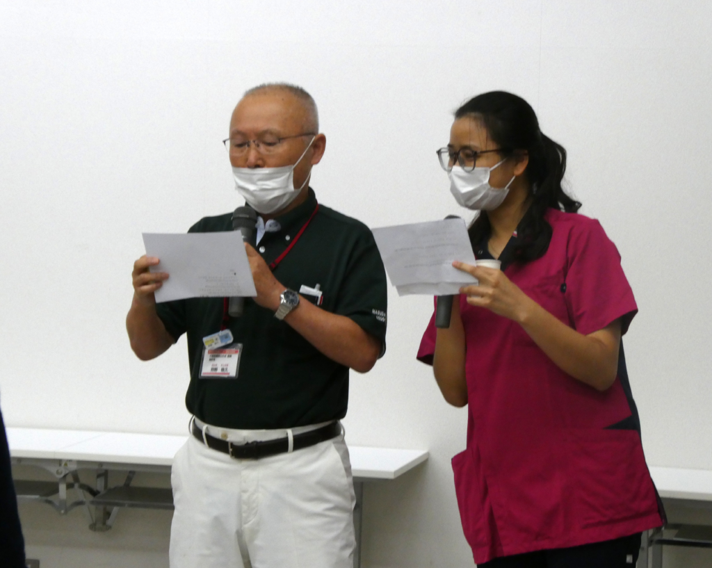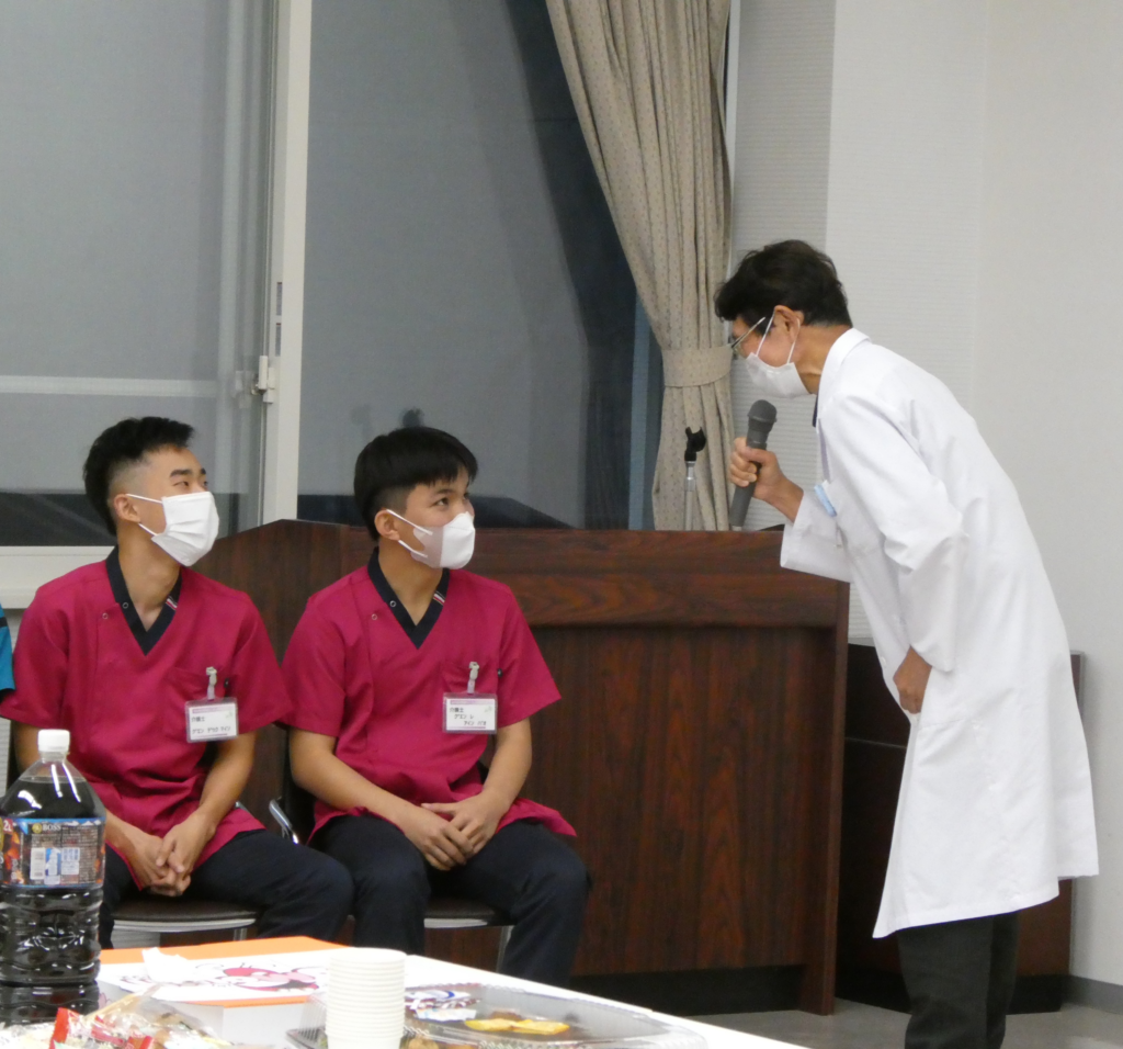 看護部長の司会のもと、まず始めに名誉院長・院長ともにベトナム語で歓迎の挨拶をされました。