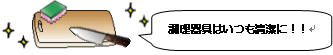 ◎調理に使用した器具は、使い終わったらすぐによく洗いましょう。洗った後、熱湯をかけると消毒効果があります。また定期的に漂白剤などによる殺菌も行うとよいでしょう。